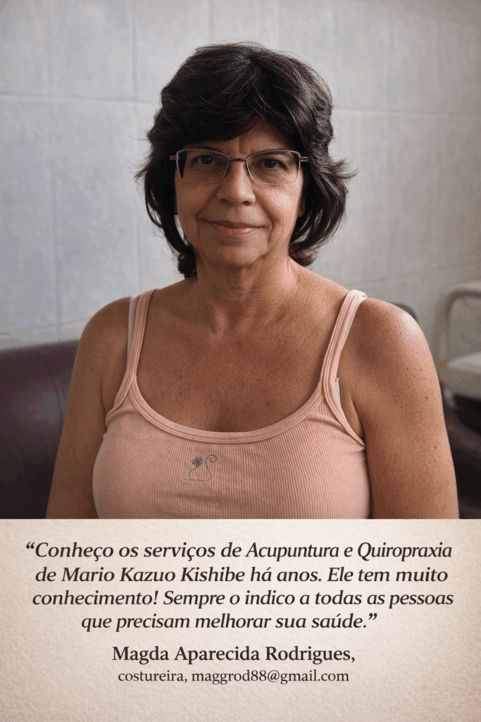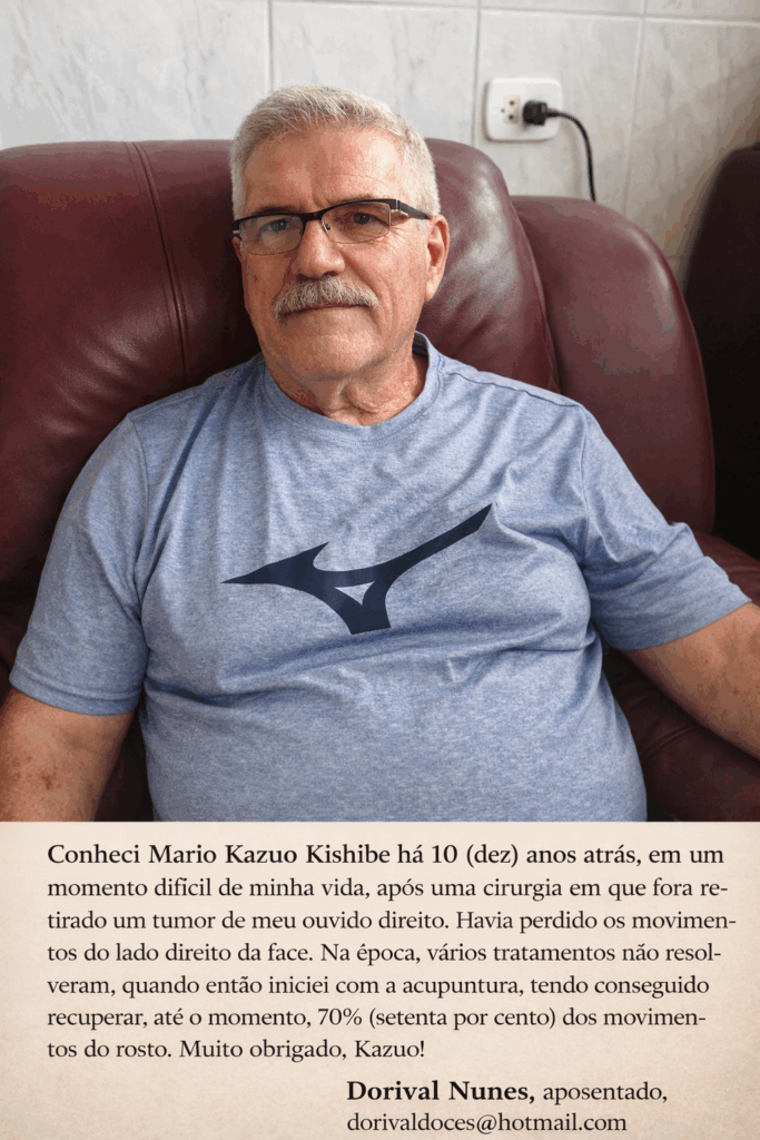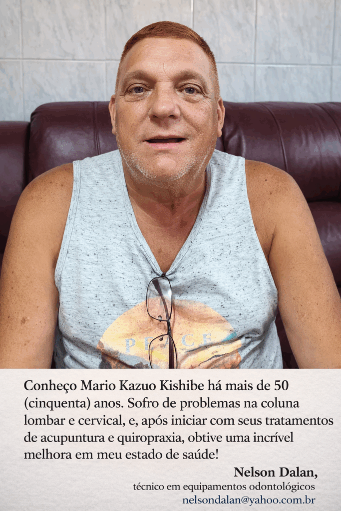 Com mais de 50 (cinquenta) anos de experiência, Kazuo Kishibe utiliza a Acupuntura como uma via segura e precisa para reequilibrar o organismo e restaurar o bem-estar. Cada atendimento é conduzido com atenção individualizada, respeitando a história do paciente e buscando alívio real, não apenas momentâneo. Clique aqui para se informar.